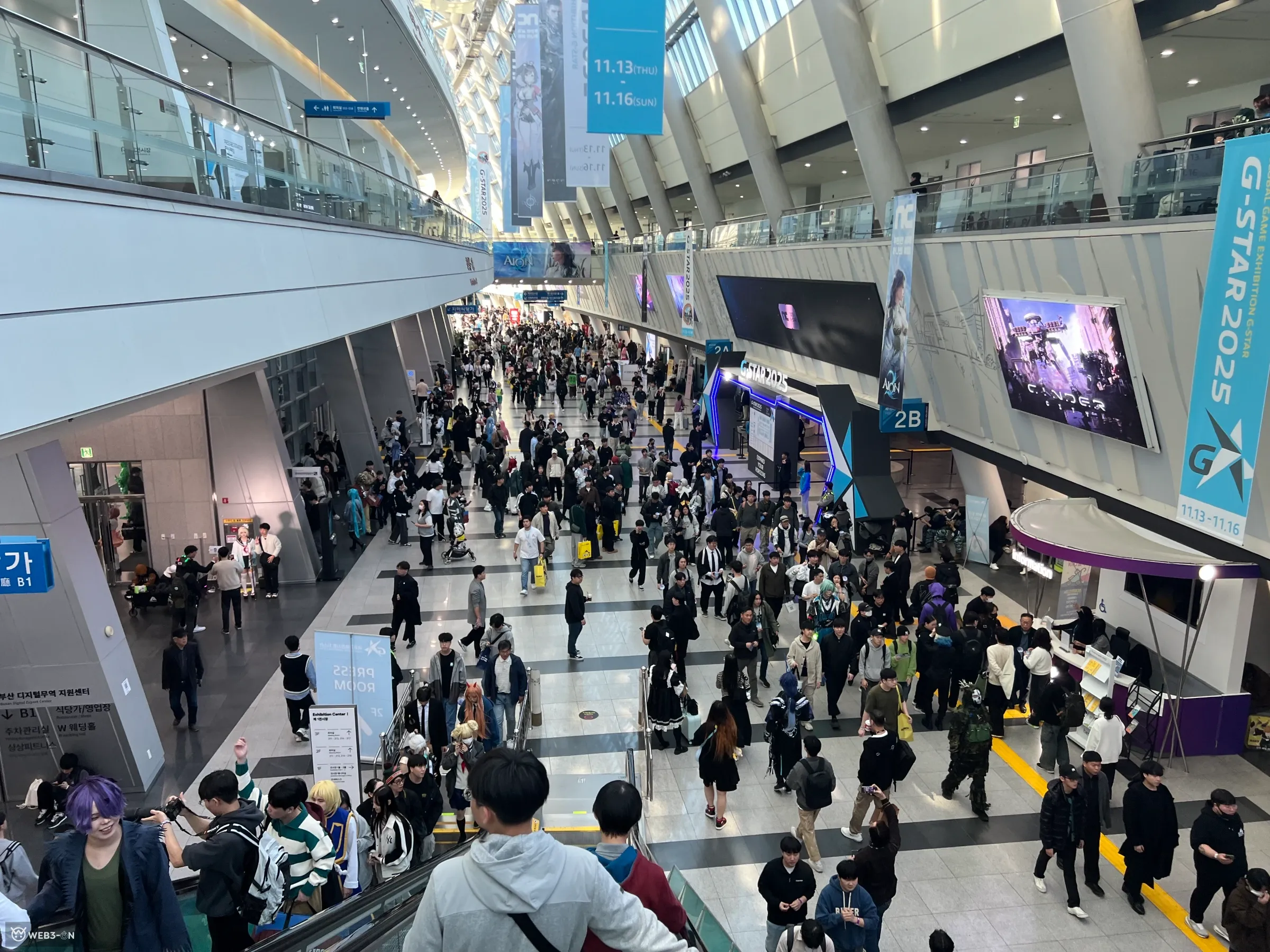 メインスポンサーのNCSOFTは、第1展示場の中央を大規模に占拠し、『AION2』『Cinder City』『Horizon Steel Frontiers』など計5本の新作を披露した。