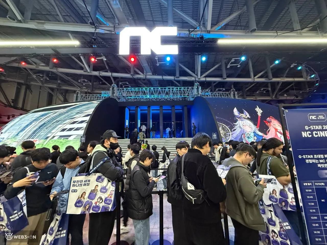 特にドーム型パノラマ空間「NCシネマ」は圧巻で、来場者は巨大スクリーンに包まれるような映像体験を通して、新作タイトルの世界観を体感できた。試遊待機列は常時数百人に達し、今年のG-STARで最も注目されたブースのひとつとなった。