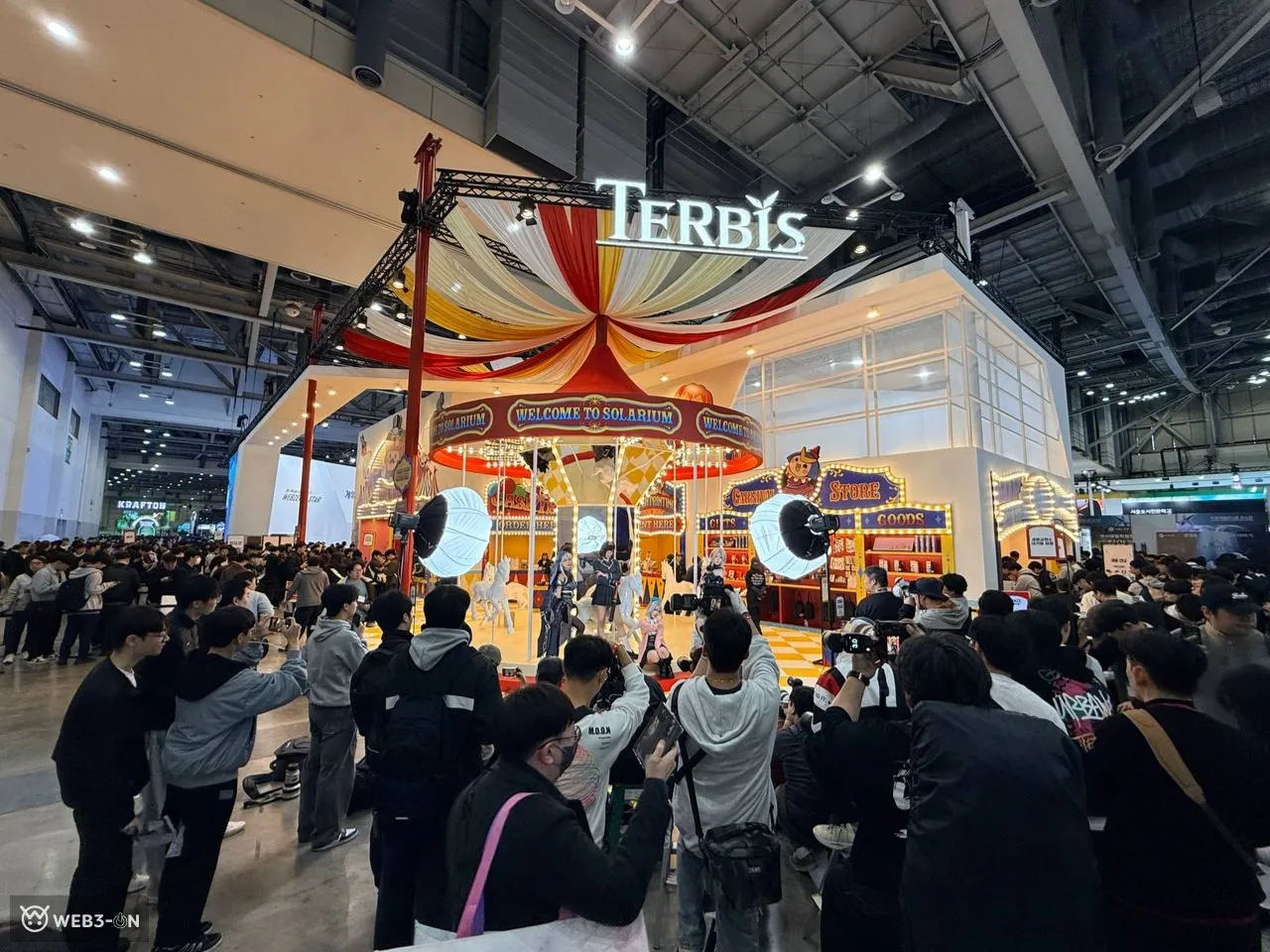 Webzenは『Gate of Gates』『TERBIS』などの新作を並べ、コミュニティ向け企画やオリジナルグッズ販売でファン層を広げた。