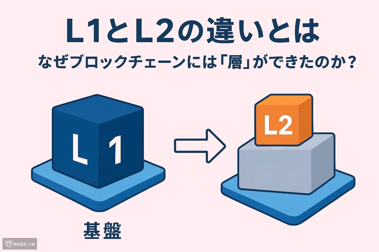 ブロックチェーンの話をしていると、「L1」や「L2」という言葉をよく耳にしますよね。なんだか専門的に聞こえますが、実はこれは「どうすればブロックチェーンをもっと速く、安く、そして安全に動かせるか」という、とてもシンプルな話なんです。この記事では、L1とL2の違い、そしてなぜ層(レイヤー)という考え方が生まれたのかをやさしく解説します!
